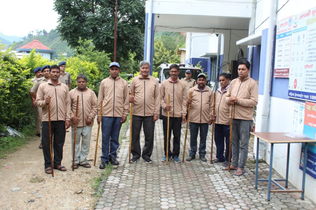 पुलिस अधीक्षक बागेश्वर द्वारा ग्राम सुरक्षा के दृष्टिगत ग्राम प्रहरियों को डंडे,सीटी व जेकेट किये वितरण