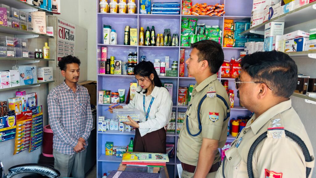 जिलाधिकारी Bageswar आकांक्षा कोंड़े के निर्देश पर गरुड़ और बैजनाथ क्षेत्र में औषधि निरीक्षक पूजा रानी के नेतृत्व में मेडिकल स्टोरों का सघन औचक निरीक्षण किया गया। इस निरीक्षण का उद्देश्य साफ था—जनस्वास्थ्य की सुरक्षा और यह सुनिश्चित करना कि लोगों को मिलने वाली दवाएं पूरी तरह सुरक्षित, प्रभावी और मानकों के अनुरूप हों। इस दौरान टीम के साथ पुलिस प्रशासन भी मौजूद रहा, जिससे कार्रवाई और भी सख्ती से की जा सके।